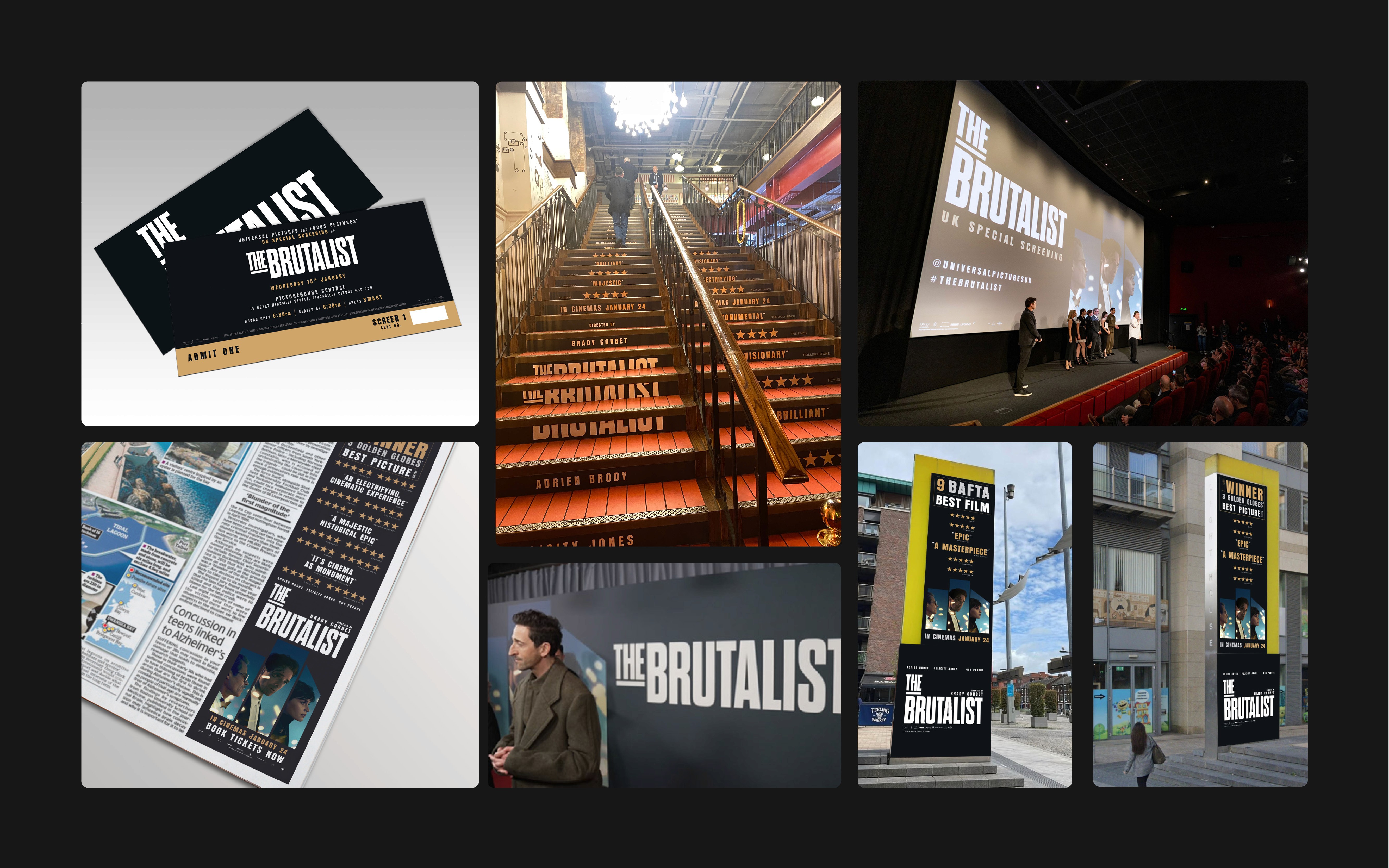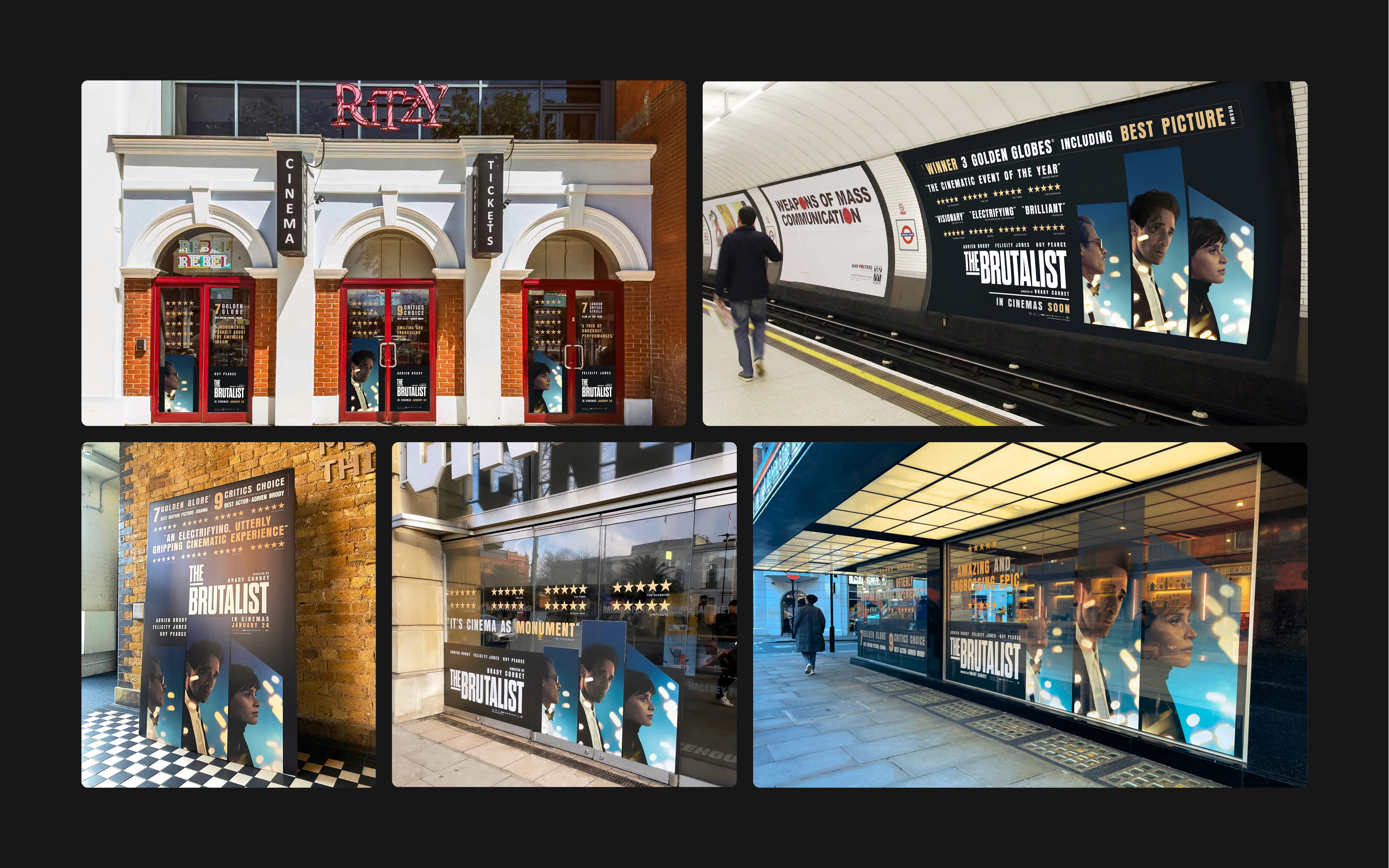 This project involved executing a major film campaign rollout across highly complex and diverse placements. I was a key designer responsible for the campaign’s extensive adaptation, which spanned numerous platforms and required technical specifications for everything from small press advertisements to the IMAX outside wrap, the largest print format in Europe. This work was executed under consistently tight and strict print schedules, demanding rapid yet precise output. A central challenge involved adapting the core artwork for each bespoke placement, often requiring immediate changes to integrate updated award nominations or quotes. My role was to integrate these client requests into the artwork while maintaining visual harmony and campaign consistency across all formats.